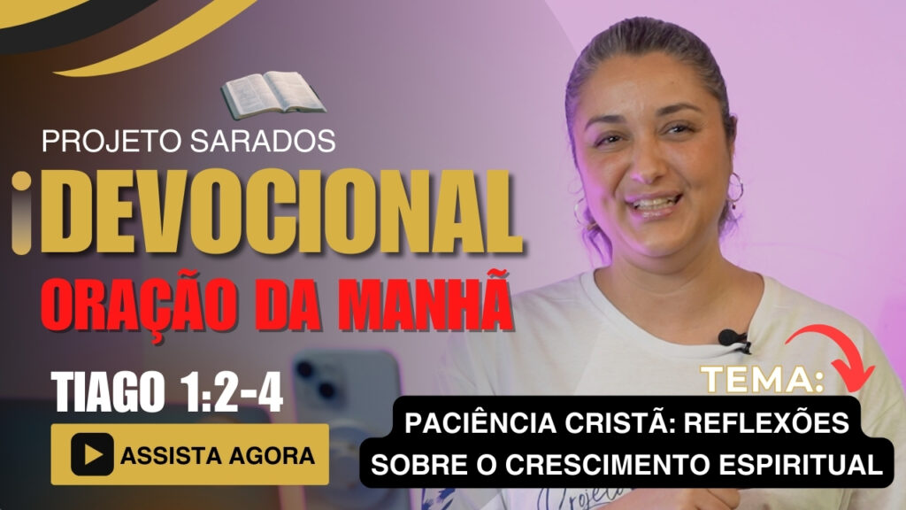Paciência Cristã | Devocional 07 | Tiago 1:2-4 ☑️ DEVOCIONAL 07NOSSO TEMA DE HOJE: Tiago 1:2-4“PACIÊNCIA CRISTÃ: REFLEXÕES SOBRE O CRESCIMENTO ESPIRITUAL” Apresentamos com entusiasmo o novo quadro: Devocional Sarados em Cristo. Prepare-se para uma experiência inspiradora que irá fortalecer sua fé e encher seu coração de esperança. 🙏 “Em nosso novo vídeo do Projeto […]
