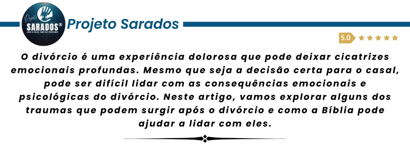 O divórcio pode ser uma experiência traumatizante, mas a Bíblia nos ensina que Deus está sempre conosco e pode nos ajudar a superar as dificuldades que surgem após o fim do casamento. É importante buscar a comunhão com Deus e com outros cristãos para superar a solidão, orar e entregar nossas preocupações a Deus para encontrar paz e tranquilidade, e buscar a sabedoria e a orientação de Deus para administrar nossas finanças. Com a ajuda de Deus e de outros, podemos superar os traumas do divórcio e encontrar a cura e a restauração em nossas vidas.